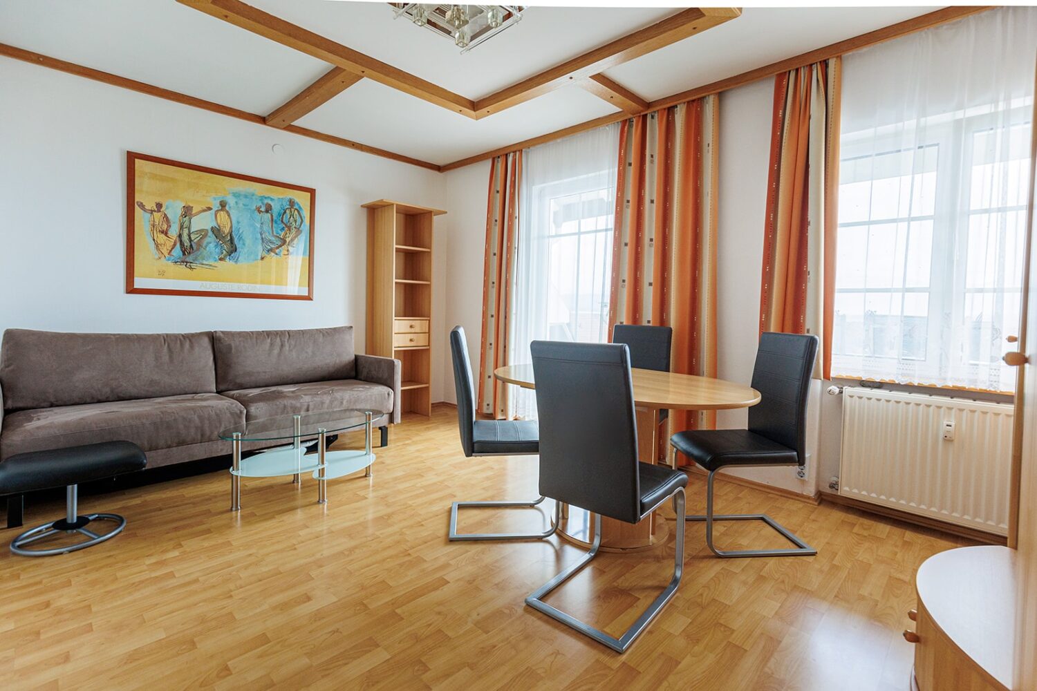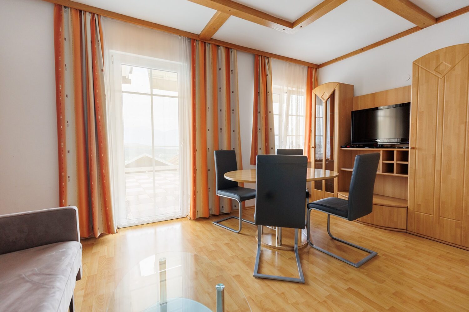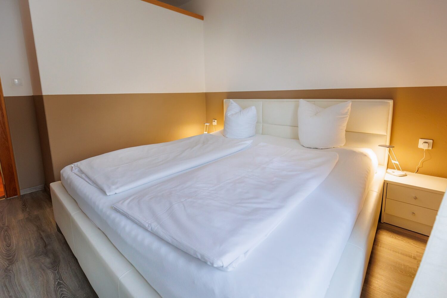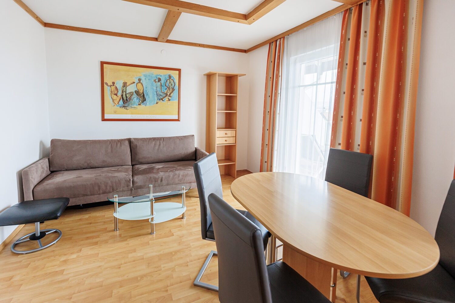 ca. 38 m2 mit Schlafzimmer, Wohnzimmer, Bad, voll ausgestatteter Küche mit Geschirrspüler, Free W-LAN, TV und das Highlight, die riesige ca. 30 m2 große Südterrasse mit Seeblick.